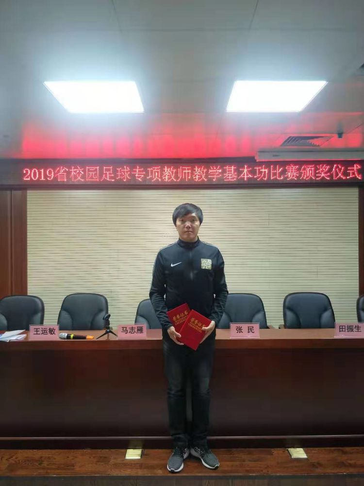 此項比賽是省校園足球工作計劃的重要內容,旨在促進校園足球特色學校的建設與發展,提高專項教師的業務水平。比賽分為教案編寫、說課、足球比賽規則考試、技術技能、體能測試等幾個部分。歷時5天的比賽,有來自全省各地的116名骨干教師參加比賽,經過激烈角逐,我校龐愛寶老師憑借出色的教學功底在比賽中脫穎而出,榮獲一等獎。