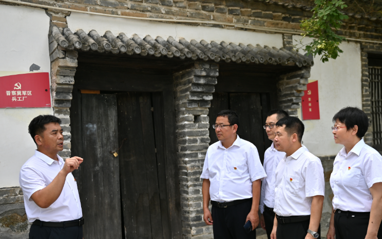 △王少縣(左)在該縣武家灣村革命舊址上“微黨課”。李秀哲 攝