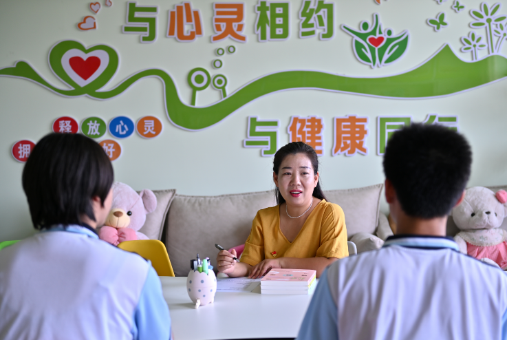 △黨員教師在為學生做心理輔導。李秀哲 攝