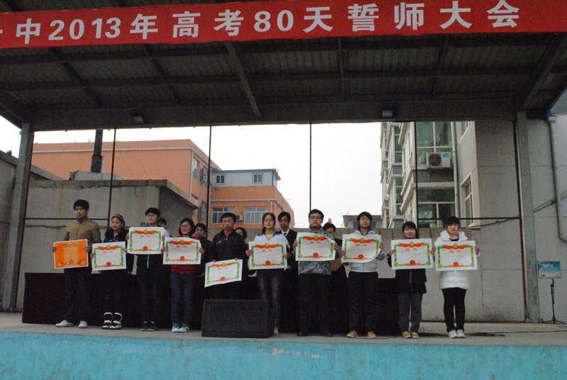 校長深情的寄語點燃了師生的熱情,接著在高三年級主任谷新龍的帶領下,高三全體教師面對學生鄭重宣誓,決心以百倍的努力、忘我的激情奮戰80天,與同學們同甘共苦,為同學們保駕護航。