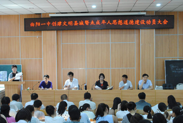 為全力做好創建文明縣城和未成年人思想道德建設工作,5月20日下午,曲陽一中召開創建文明縣城暨未成年人思想道德建設動員大會。