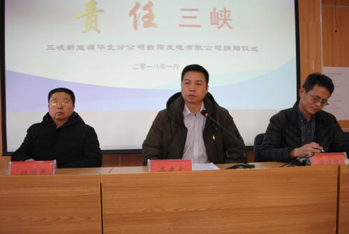 2018年1月10日,“三峽新能源華北分公司曲陽發(fā)電有限公司”捐資助學(xué)儀式在曲陽一中大階梯教室進(jìn)行,隆冬寒日,暖意融融。